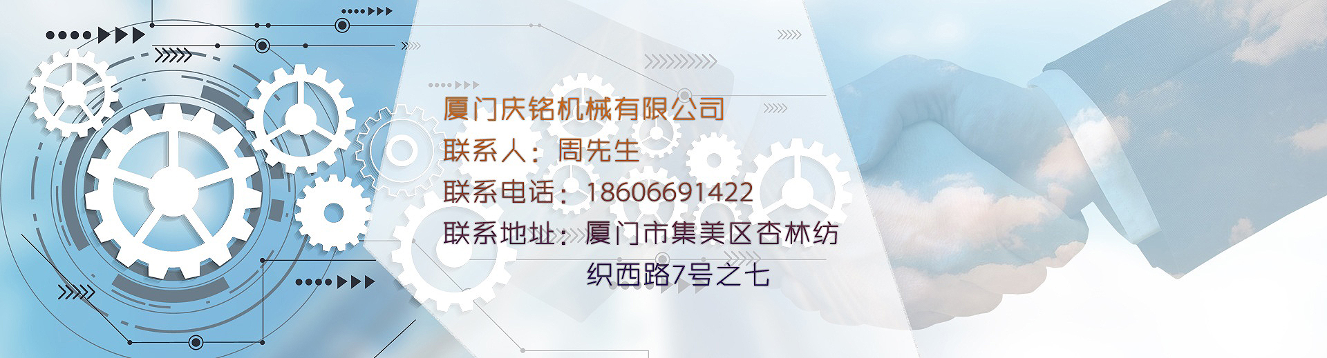 廈門(mén)慶凡機(jī)械有限公司為臺(tái)灣獨(dú)資企業(yè),創(chuàng)立于1982年。 制作大圓機(jī)心臟和傳動(dòng)零配件。供應(yīng)臺(tái)灣和大陸機(jī)械廠,至今三十多年歷史。經(jīng)過(guò)不斷的辛勤努力,2000年在大陸福建省成立了廈門(mén)慶祥銘機(jī)械有限公司,2015年公司改組為廈門(mén)慶銘機(jī)械有限公司。 創(chuàng)辦人的經(jīng)營(yíng)理念是以"不斷努力,誠(chéng)信經(jīng)營(yíng)"的精神努力地做好崗位的工作。 ?